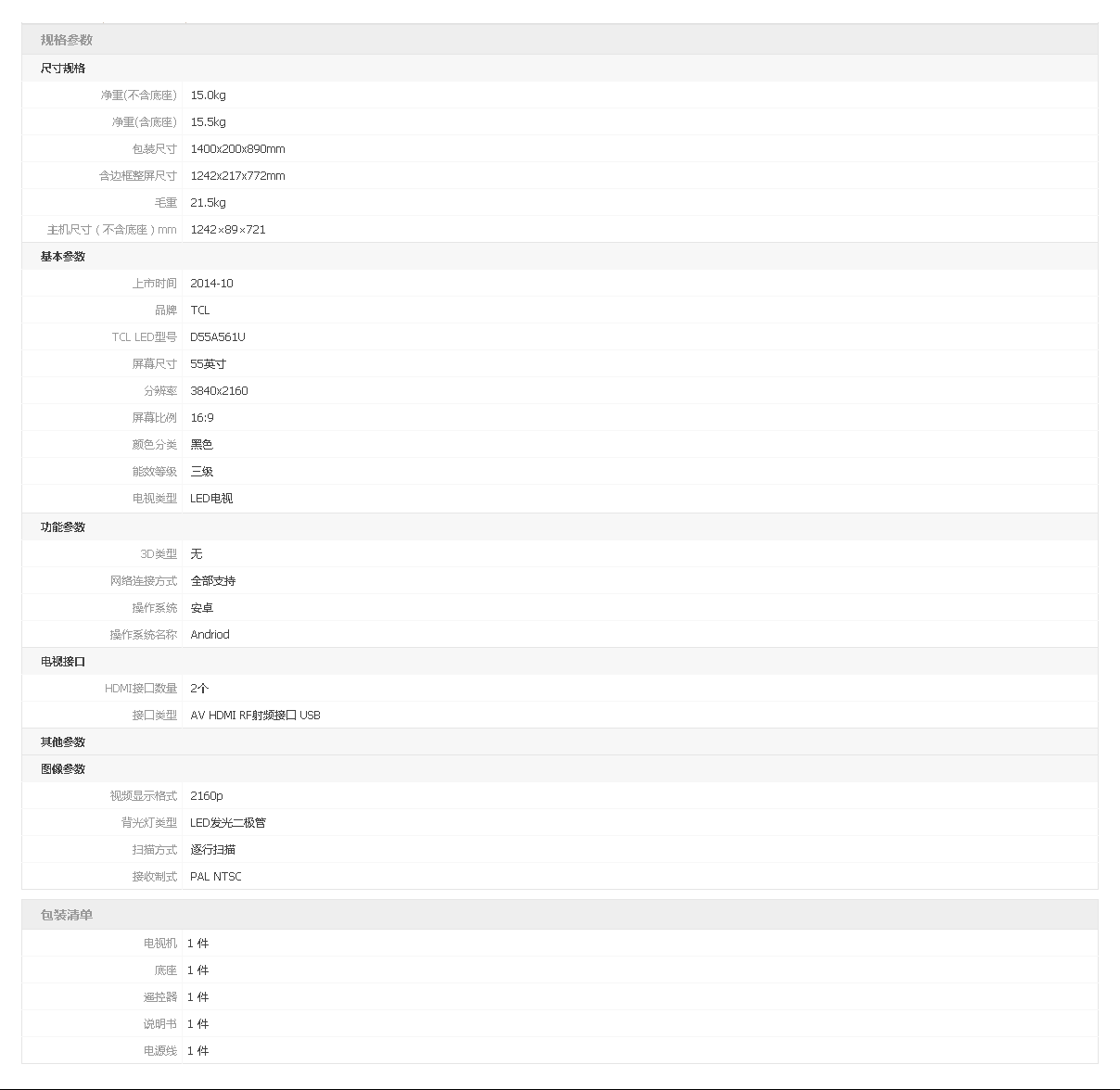 规格参数